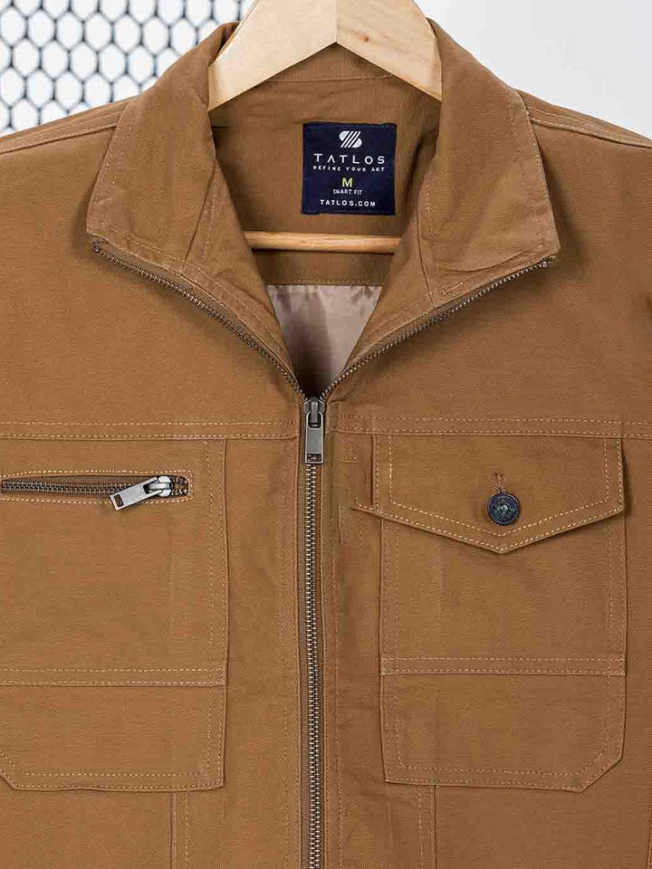 Color & Style: A rich Caramel Brown defines this piece, structured with a classic shirt collar for a refined casual look.