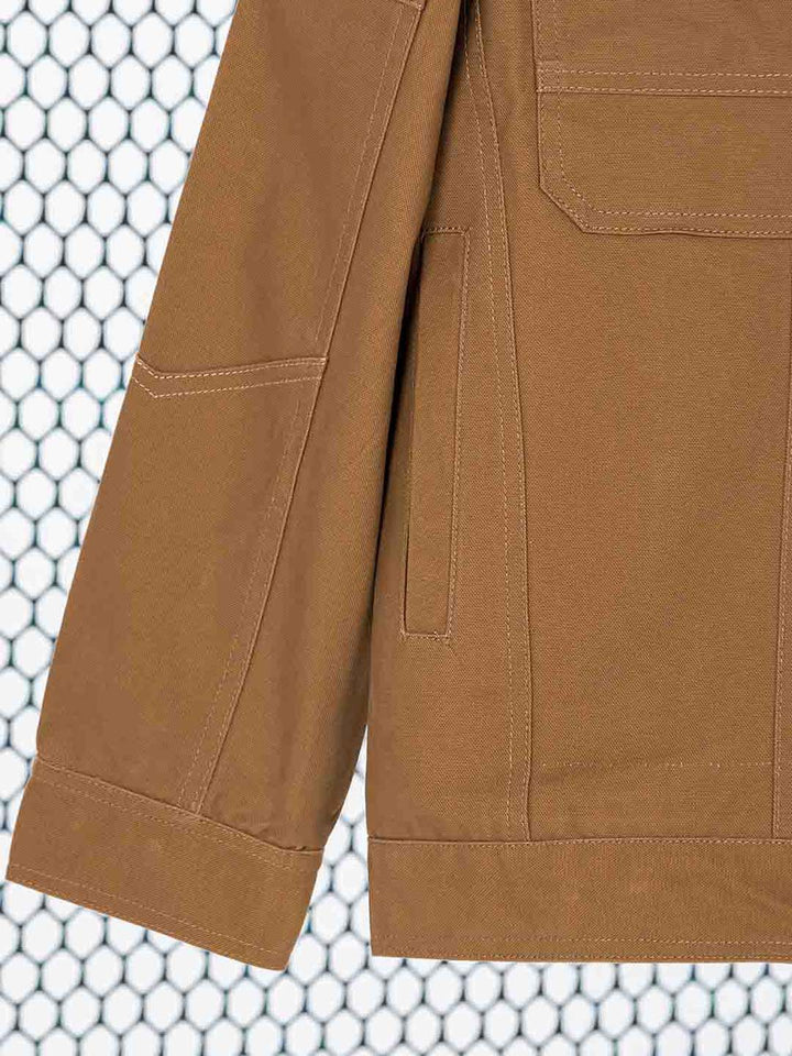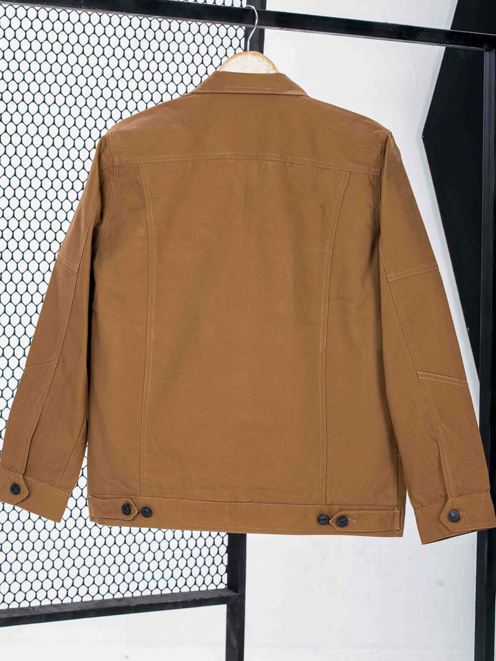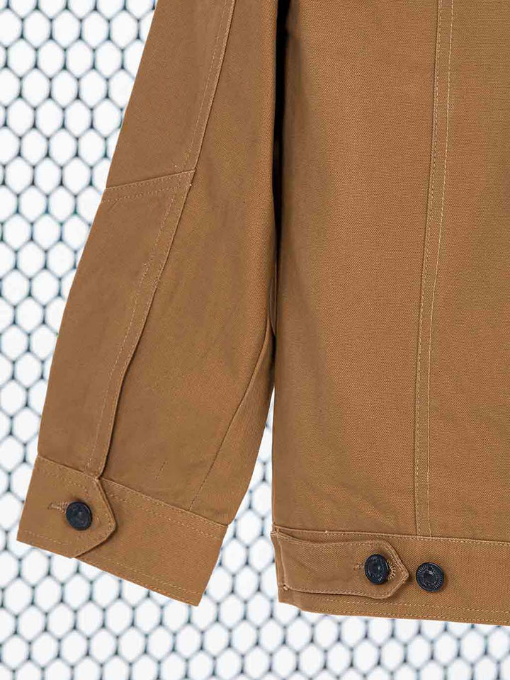 Hardware: High-quality metallic shank buttons are used on the cuffs and on the flap pocket, adding rugged detail.