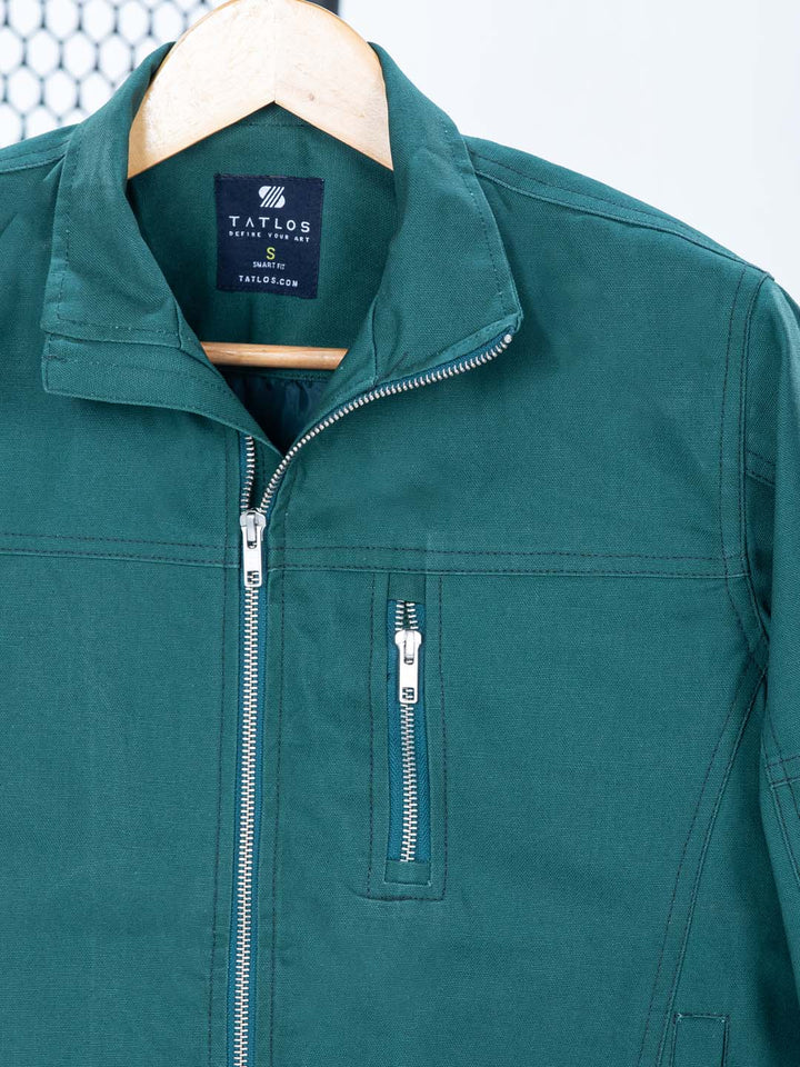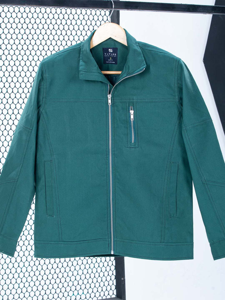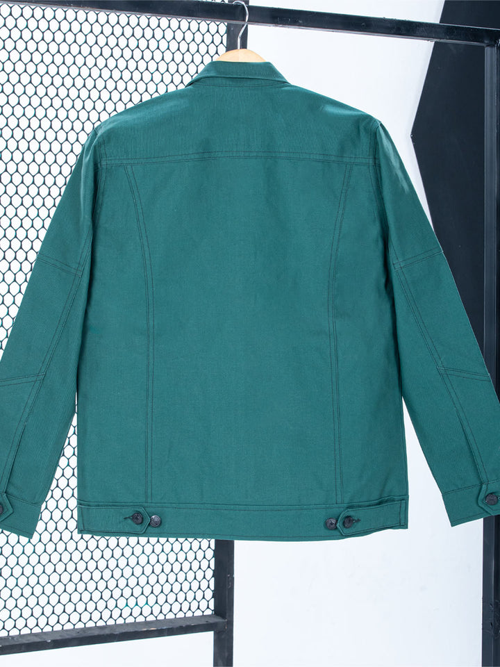 Color & Style: Presented in a beautiful Deep Teal Green, this jacket features a timeless casual shirt collar structure.