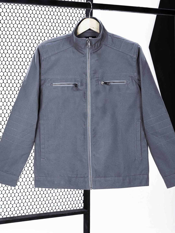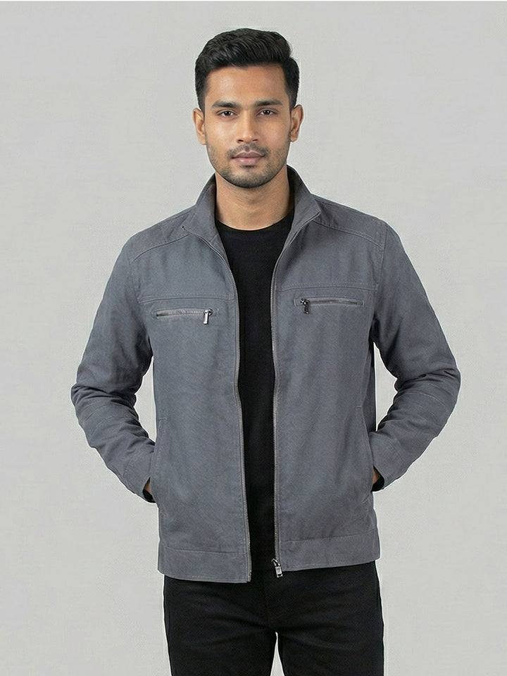 Color & Profile: Presented in a timeless Silver Gray shade, this jacket features a smart shirt collar structure, blending casual comfort with a tailored feel.