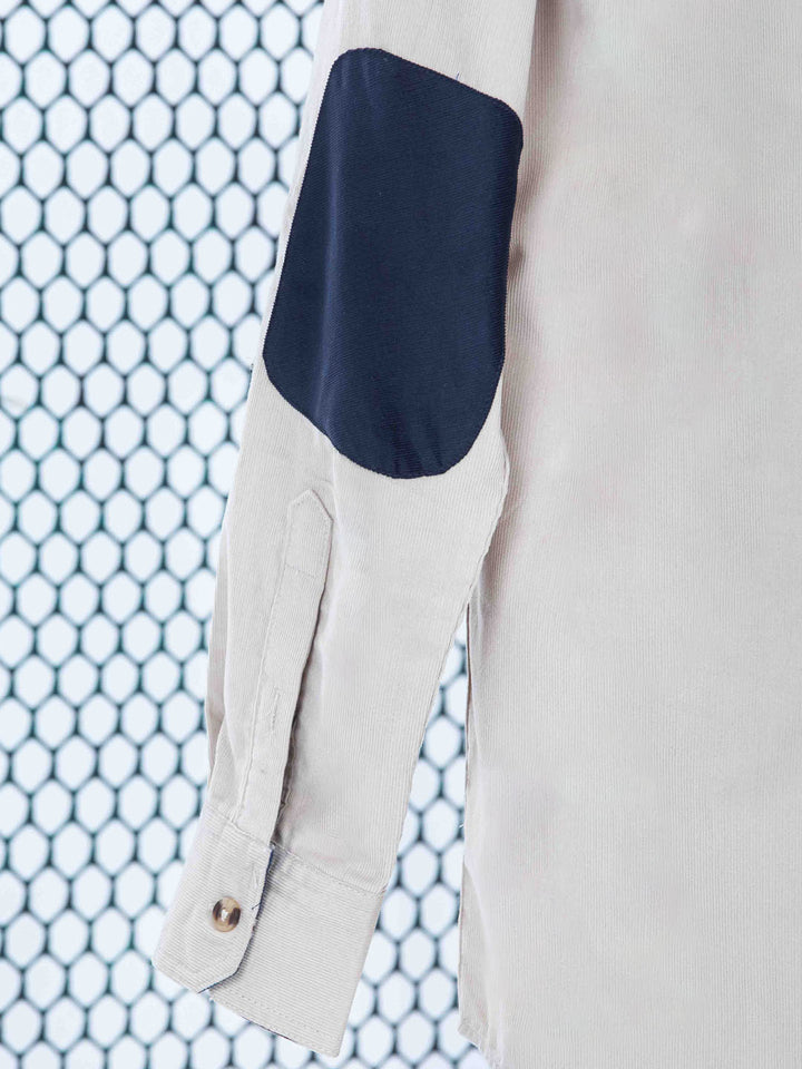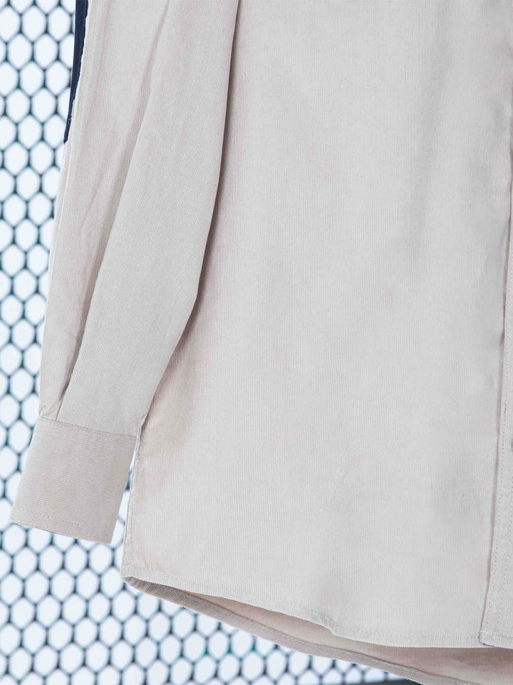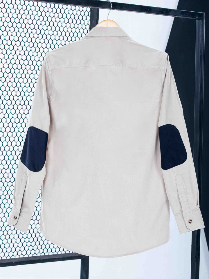 Men's Casual Corduroy Full Sleeve Shirt in Block Cream